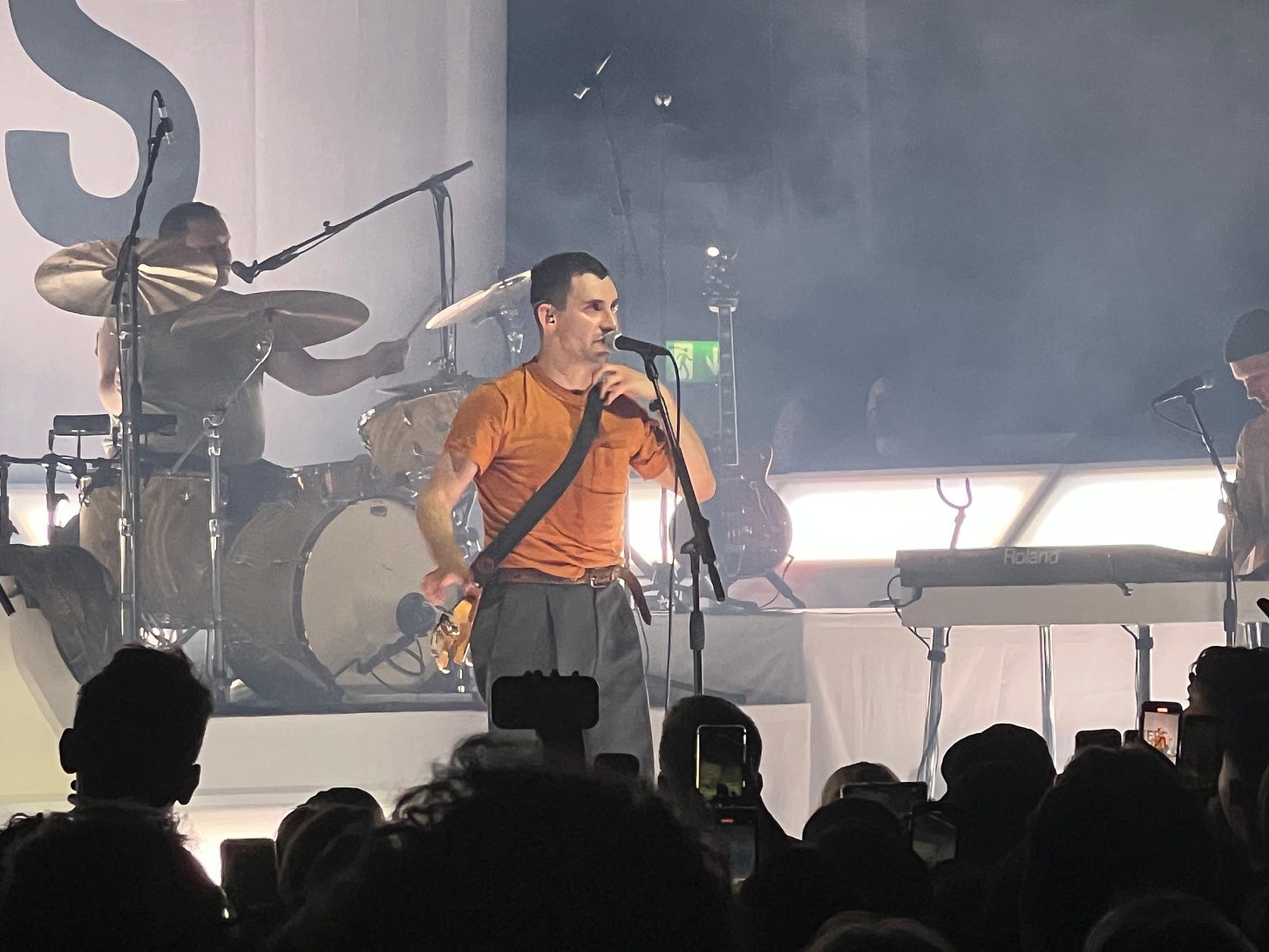 As I write I’m asking myself what it is I want to record about this gig. What is it I want to remember about spending the evening of 20th March 2024 with Bleachers in 10, 20, 30+ years from now? Selfishly I think it’s the unusual connection I feel to Jack in terms of his brain and how music seems to impact and move through it. The way I feel about music and how it affects me seems to be very similar to how Jack experiences it. I’ve never felt such an affinity with someone else’s description of how they feel and experience music. Both times I’ve seen Bleachers Jack has told his origin story of the band. How when he was dealing with a particularly deep bout of depression he ordered (I think) a particular type of keyboard. I can’t quite remember the specifics as I was mesmerised by the note Jack kept flicking on and off, observing that when we can hear the note we have hope. Sound = hope. Silence = despair. I am completely and utterly convinced that the hum of an electronic sound changes my brain chemistry. I get the sense it does something similar for Jack.