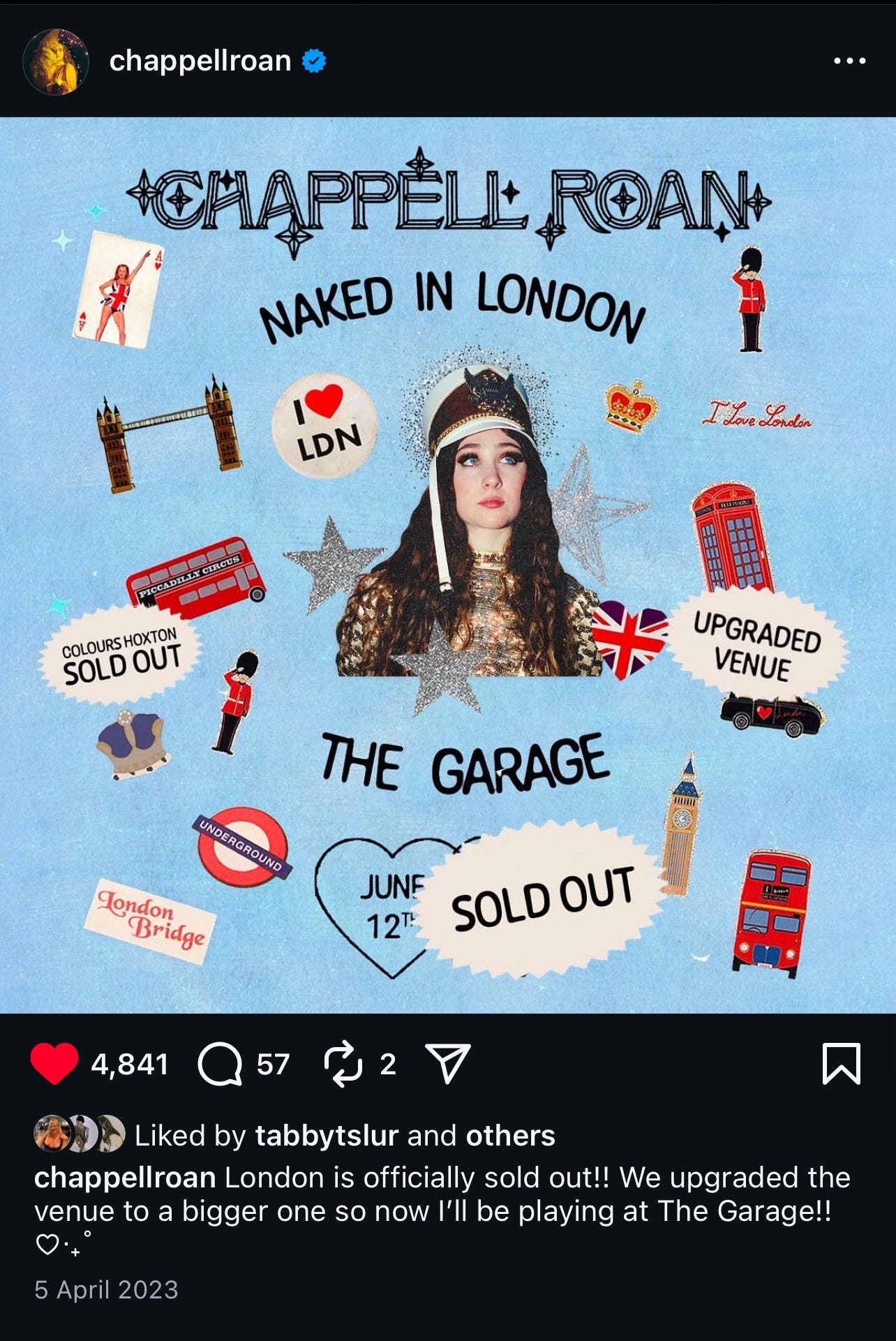 Last autumn I saw two of Chappell’s three Midwest Princess Tour shows in Brixton (London) and the year before, I was in the crowd for Chappell’s first ever international headline show at a tiny venue in Highbury and Islington called the Garage (capacity 600). I remember walking down the road from the train station to my flat whilst trying to buy a ticket for the Garage show. I was having trouble adding two tickets to the basket but when I tried adding one, it let me and it cost £13 (what the actual fuck). I thought my partner wouldn’t mind me going alone given the show was mid week and she’d be sitting exams then. Thankfully, I was right and it seems I got the last ticket to see Chappell Naked In London! A few months later my partner and I saw Chappell for the first time together at Heaven, another tiny venue in central London.